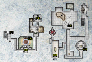 An annotated map of the lower levels of the Ancient Tomb, including locations 15-21