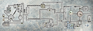 An annotated map of the lower levels of the Ancient Tomb, including locations 1-14