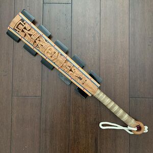Lining the walls of the next room [12] were what appeared to be human skins. The reptilian members of the party insisted the flayed skins be deposited in the Bag of Holding, alarming Ardrick. Inside the room stood a gigantic statue of Xipe, the Lord of the Flayed Skins. Opposite the statue of Xipe was a well that seemed to be illuminated from within. Above the well was a hole in the tall ceiling. Using a combination of Fly and Ka-Ess' magical whistle, the crew ascended through the hole into the lair of Xipe, an oni who filled the room with some sort of sleet storm. He was subdued by the Fishwives, who then looted his corpse.