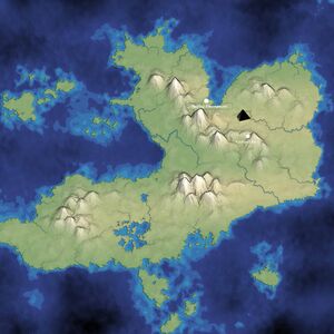 The island is mostly covered in dense tropical rainforest, which provide habitat for large wild pigs. Volcanic mountains rise above the forest, inhabited by gnolls, harpies, and at least one cyclops.