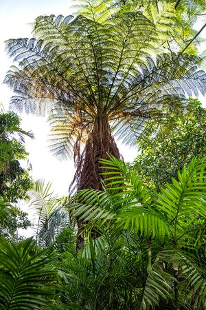 A prehistoric fern grew in a lush corner of The Garden of Tellurian Gratification.