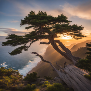 A gnarled cedar on the cliffs above Halfling Town.