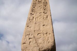 Detail view of one of the stone monuments.
